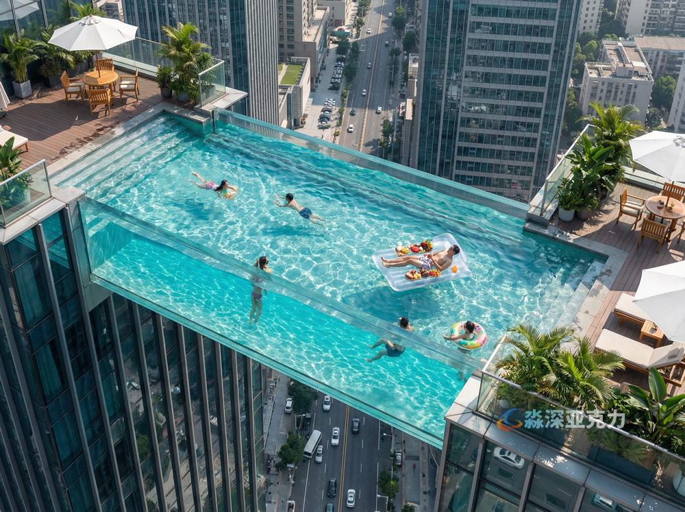 亚克力透明泳池,早已不局限于地面。它正在“飞”向更多意想不到的空间。