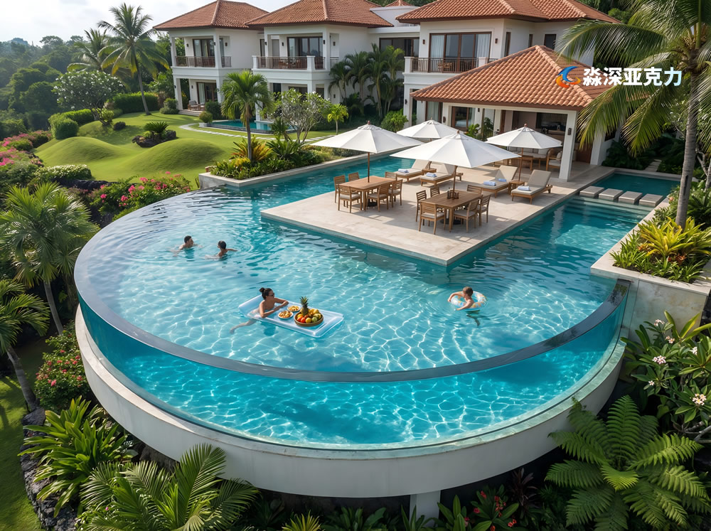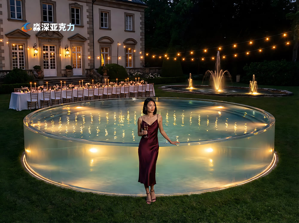 地面定制,融入花园。我们根据您的庭院尺寸、建筑风格与景观布局,量身设计泳池的形状与深度——方形、圆形、异形皆可实现。透明材质让池体显得轻盈通透,不遮挡视线,花园的层次感反而更加丰富。