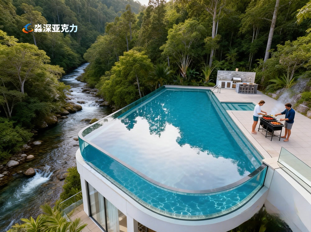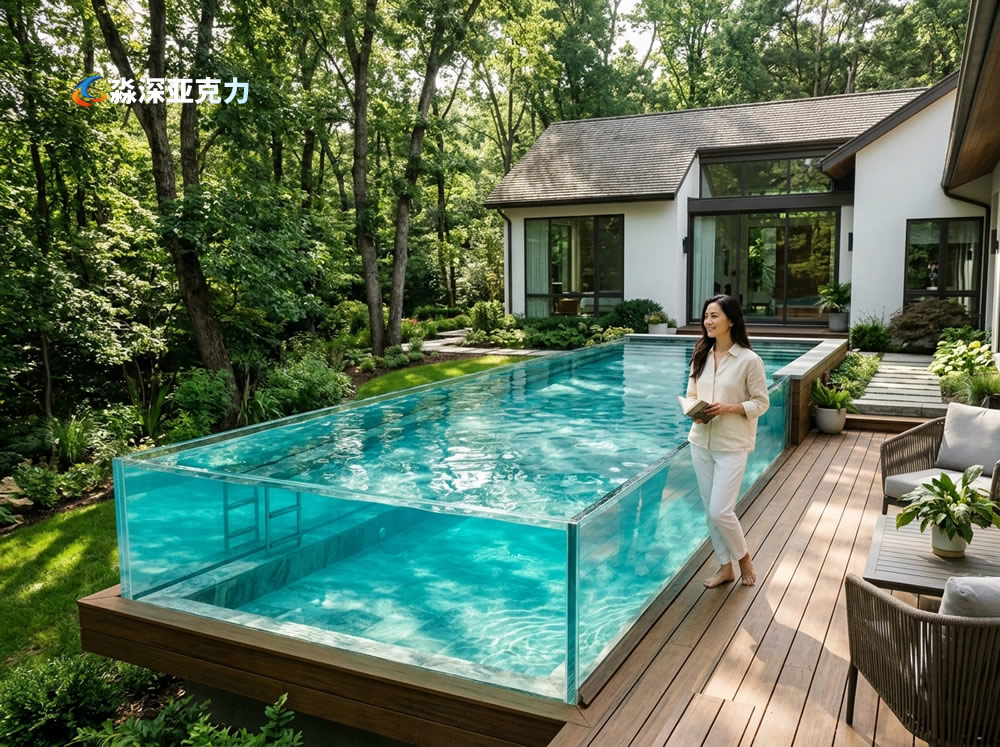 不必悬于高空,无需挑出楼外——一方安放在自家庭院中的地面透明亚克力泳池,就能让您的别墅花园成为人人向往的诗意栖居。