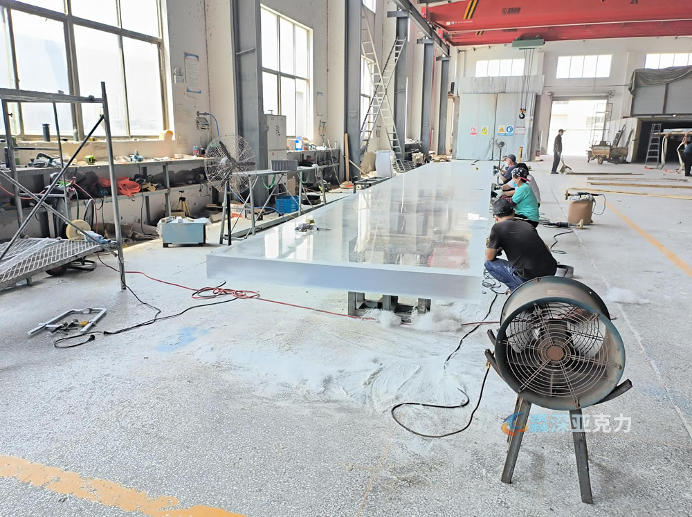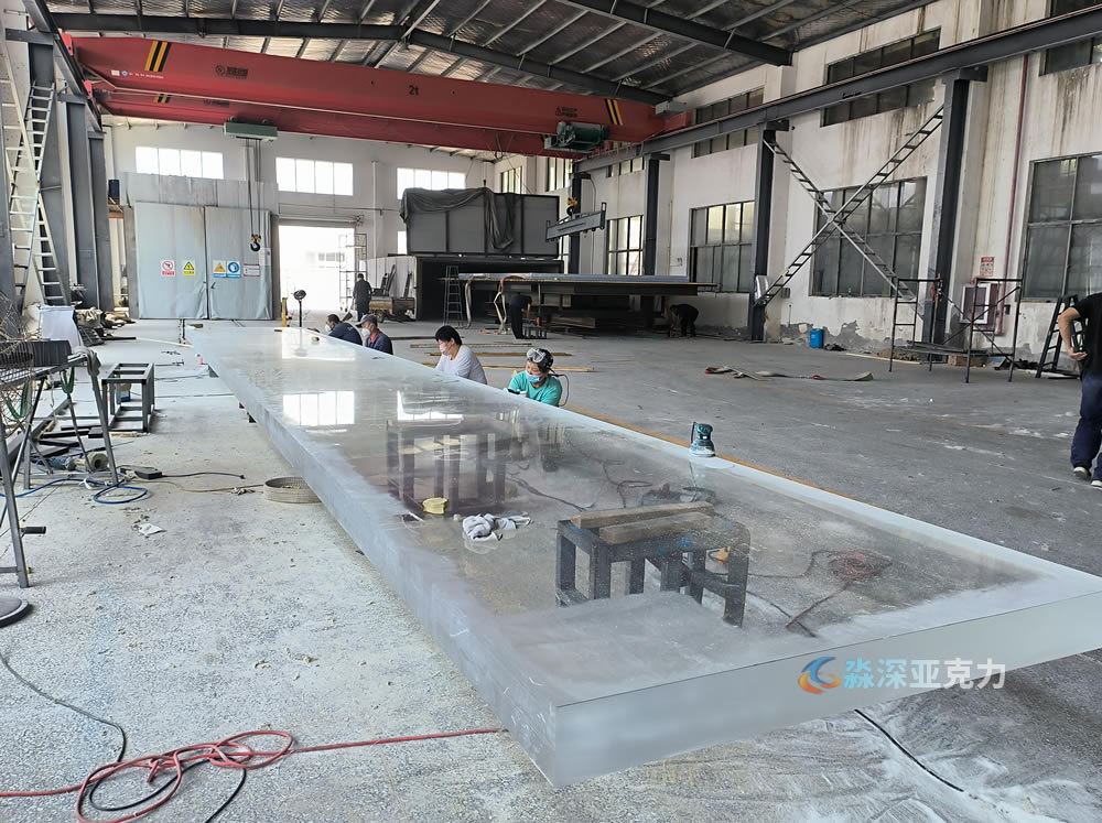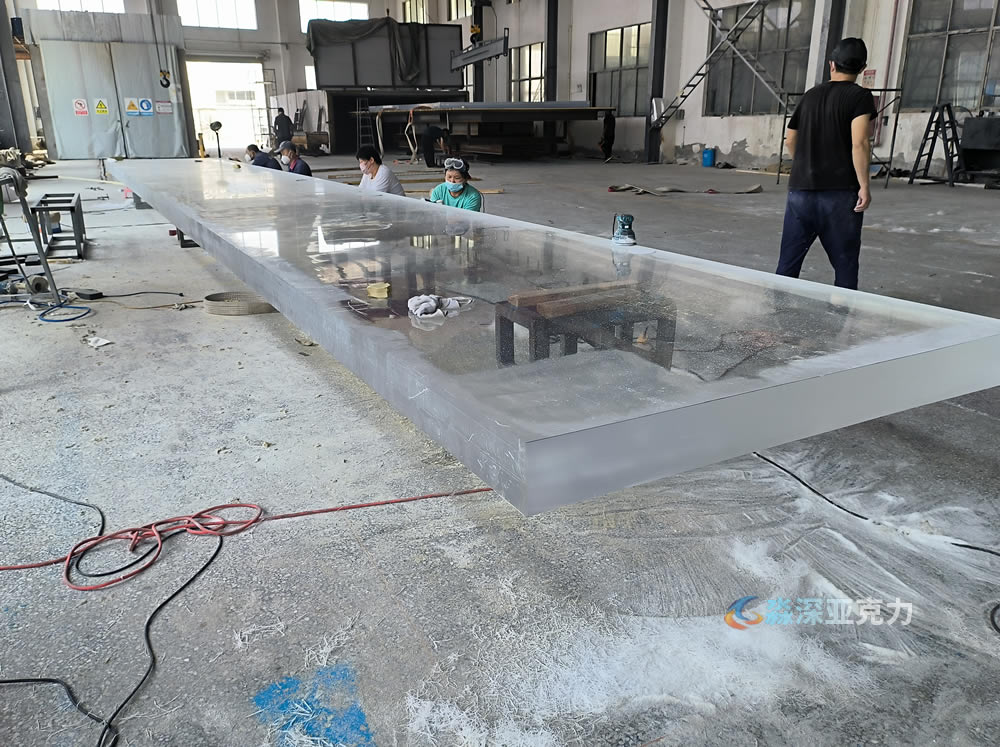 10米长15厘米厚度亚克力游泳池板正在打磨中